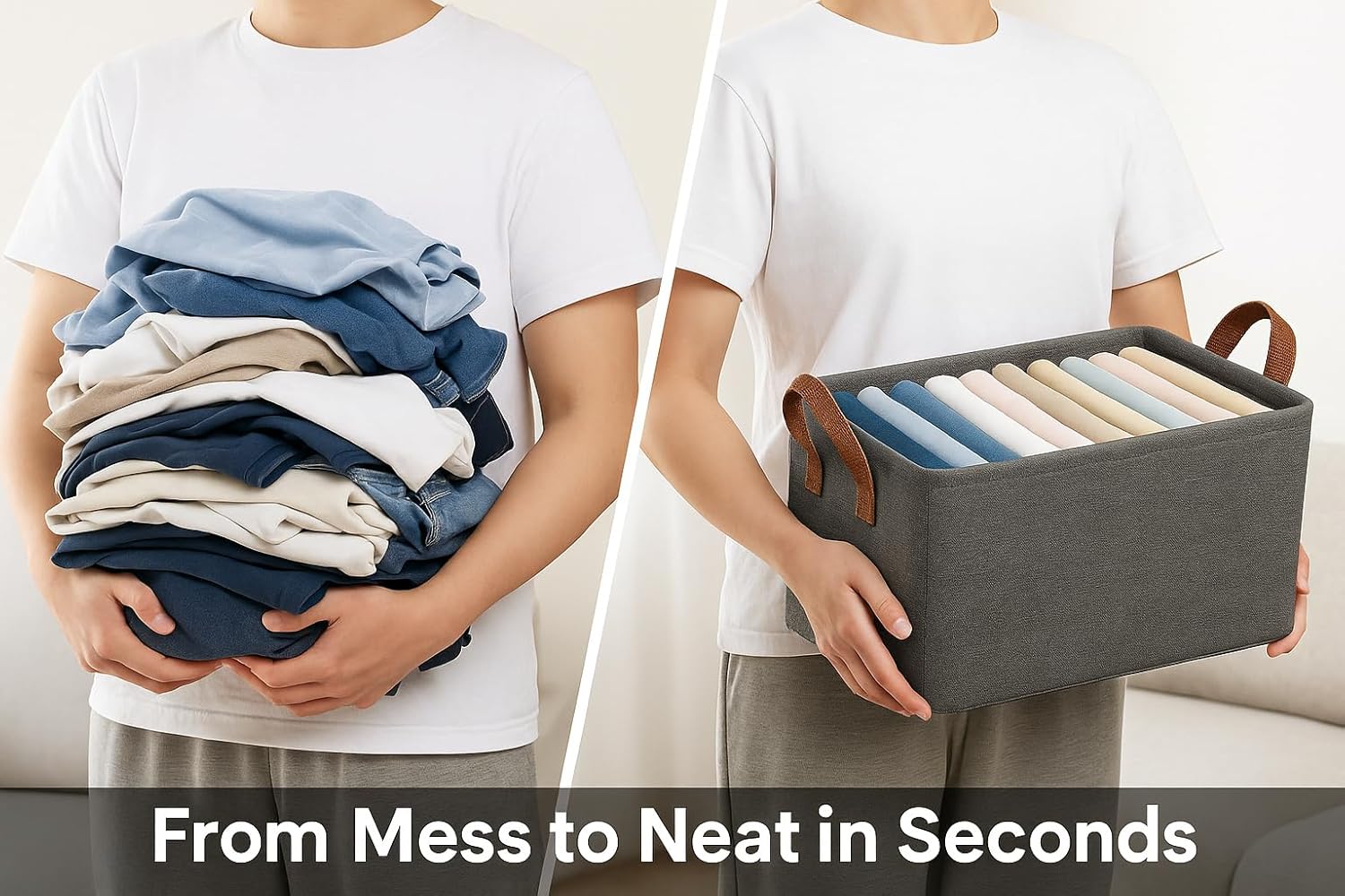 Messy cupboards ki goodbye cheppandi! Ee Foldable Wardrobe Storage Boxes mee clothes ni neat ga organize chesi, space ni smart ga use cheyadaniki perfect solution.
